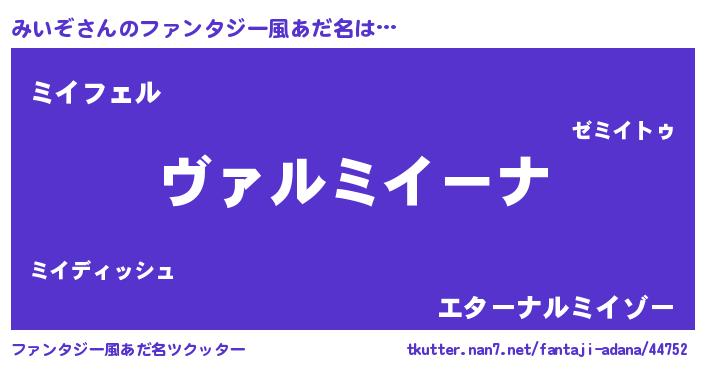 | 男性向けラノベタイトル風あだ名 | 『魔弾の王とみいぞ』『みいぞの憂鬱』 |