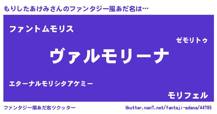 | 男性向けラノベタイトル風あだ名 | 『この素晴らしい世界にもりしたあけみを!』 |