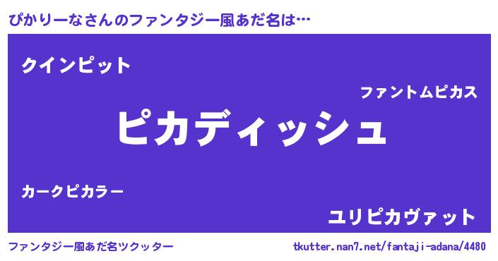 | 男性向けラノベタイトル風あだ名 | 『ぴかりーなという概念が存在しない退屈な世界 』 |
