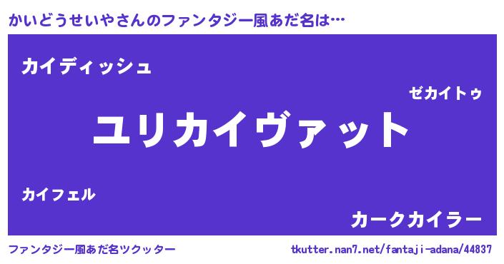 | 男性向けラノベタイトル風あだ名 | 『転生したらかいどうせいやだった件』 |
