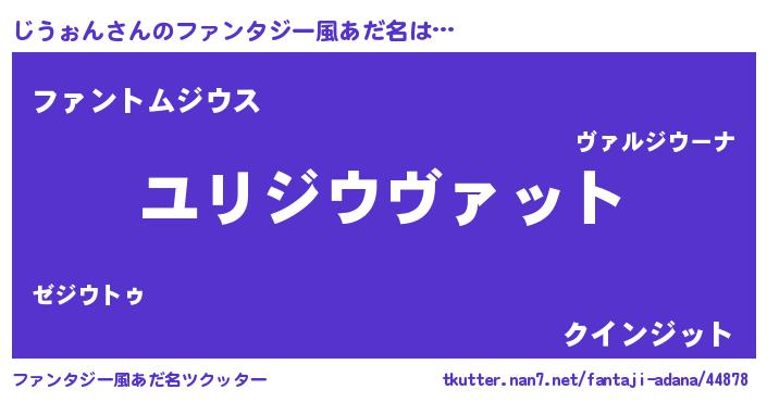 | 男性向けラノベタイトル風あだ名 | 『じうぉんに滅ぼされるだけの簡単なお仕事です』 |