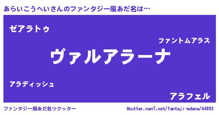 | 男性向けラノベタイトル風あだ名 | 『この素晴らしい世界にあらいこうへいを!』 |