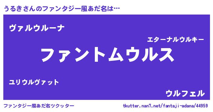 | 意味不明あだ名 | 『とにかく怪しいうるき』 |