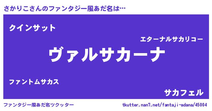 | 女子向けラノベタイトル風あだ名 | 『乙女ゲームの破滅フラグしかない悪役さかりこに転生してしまった…』 |
