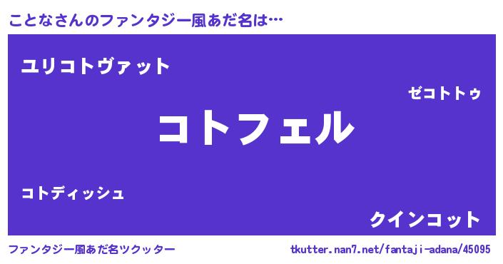 | 女子向けラノベタイトル風あだ名 | 『ことな姫と円卓の騎士』 |