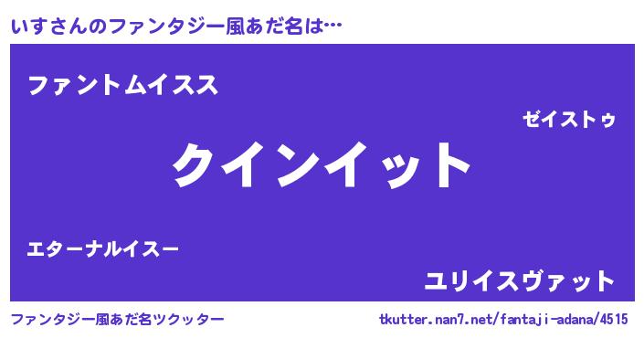 | 自動車の名前っぽいあだ名 | 『フィッイ』『イルトスパン』 |