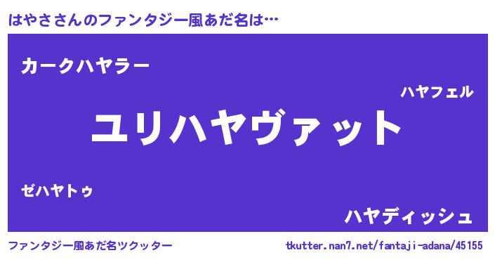 | 男性向けラノベタイトル風あだ名 | 『ハヤサスレイヤー』『緋弾のハヤサ』 |