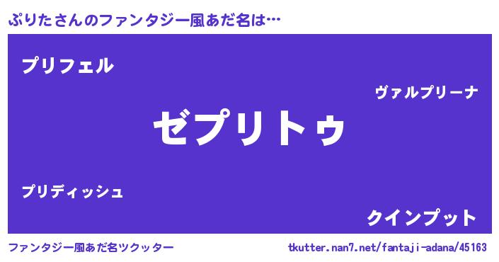 | 意味不明あだ名 | 『自称ぷりた』『ペロリンぷりた』 |