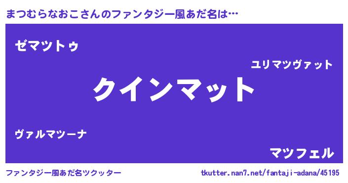 | 欧米人風あだ名 | 『アンジェラ・まつむらなおこ』 |