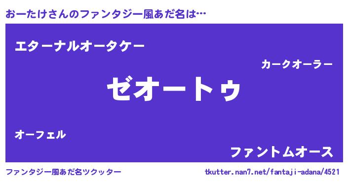 | 男性向けラノベタイトル風あだ名 | 『Re:おーたけから始める異世界生活』 |