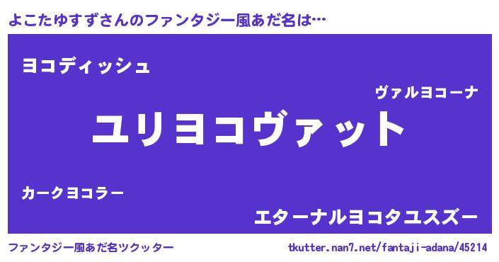 | 男性向けラノベタイトル風あだ名 | 『ヨコタユスズスレイヤー』 |