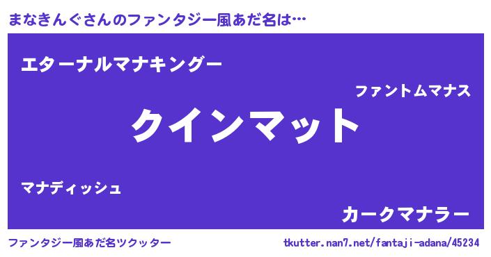 | 女子向けラノベタイトル風あだ名 | 『まなきんぐ恋絵巻』 |