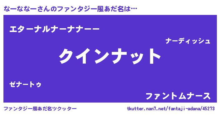 | ヒーロー風カッコイイあだ名 | 『愛の使者なーななー』『炎刃騎士ナー』 |