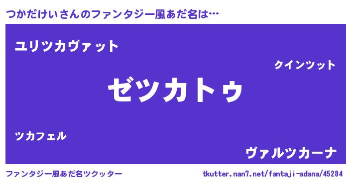 | 男性向けラノベタイトル風あだ名 | 『Re:つかだけいから始める異世界生活』 |