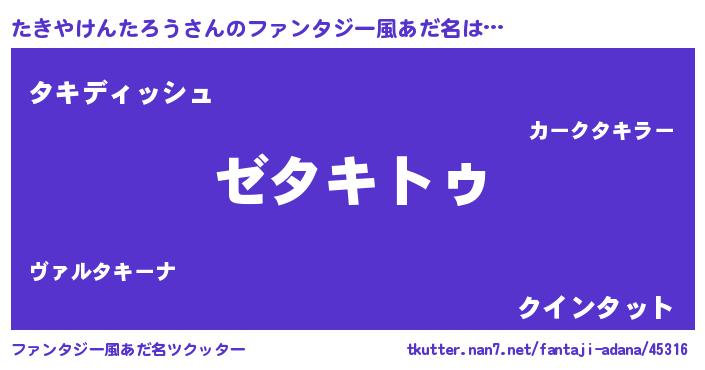 | 意味不明あだ名 | 『自称たきやけんたろう』 |