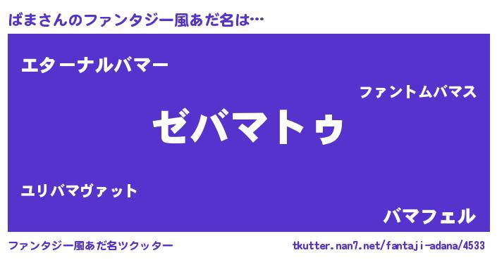 | 男性向けラノベタイトル風あだ名 | 『Re:ばまから始める異世界生活』 |