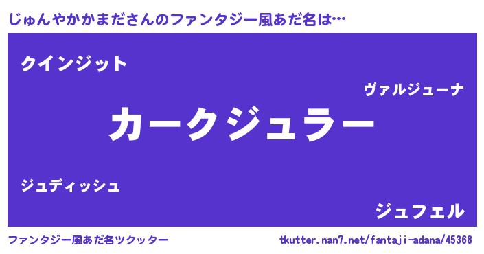 | 女子向けラノベタイトル風あだ名 | 『シンデレラじゅんやかかまだ家の靴箱館』 |
