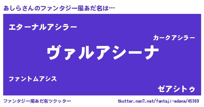 | 男性向けラノベタイトル風あだ名 | 『魔弾の王とあしら』 |