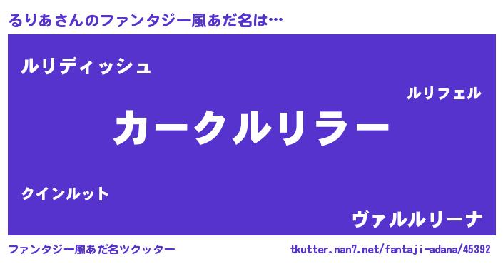 | ヘコむあだ名 | 『るりあ(震え声)』『るりふぇ~』 |