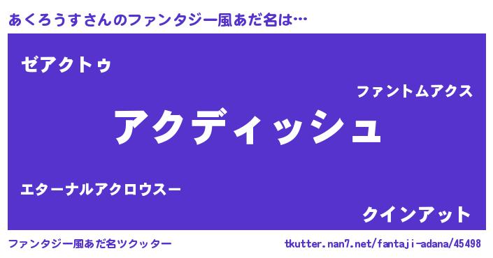 | ヘコむあだ名 | 『あくろうす(小並感)』『あくっ子』 |