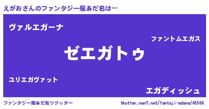 | ヒーロー風カッコイイあだ名 | 『究極戦士エガオ』『仮面エガダー』 |