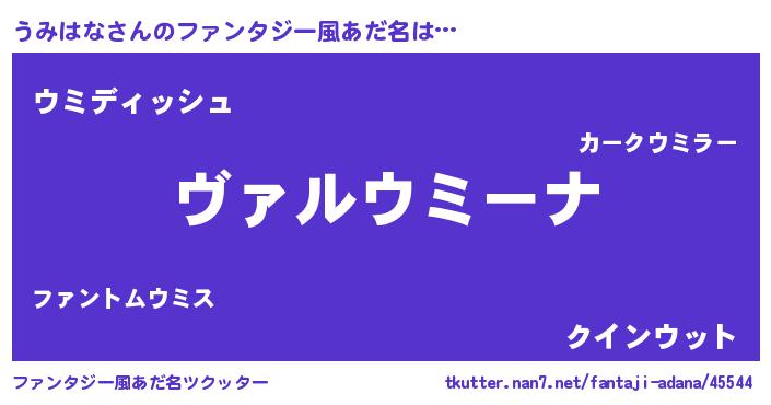 | ヘコむあだ名 | 『うみはな(小並感)』『うみお』 |