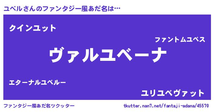 | 男性向けラノベタイトル風あだ名 | 『この素晴らしい世界にユベルを!』 |