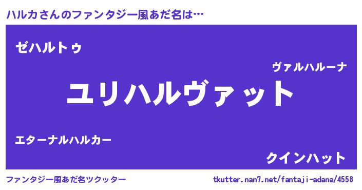 | ヒーロー風カッコイイあだ名 | 『究極戦士ハルカ』『友情の使者ハルカ』 |