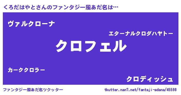| ヘコむあだ名 | 『くろっふぃ~』『くろだはやと(震え声)』 |