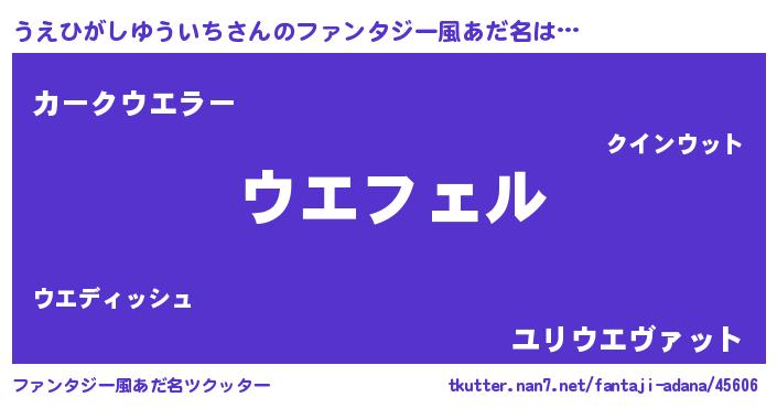 | 男性向けラノベタイトル風あだ名 | 『ウエヒガシユウイチアートオンライン』 |