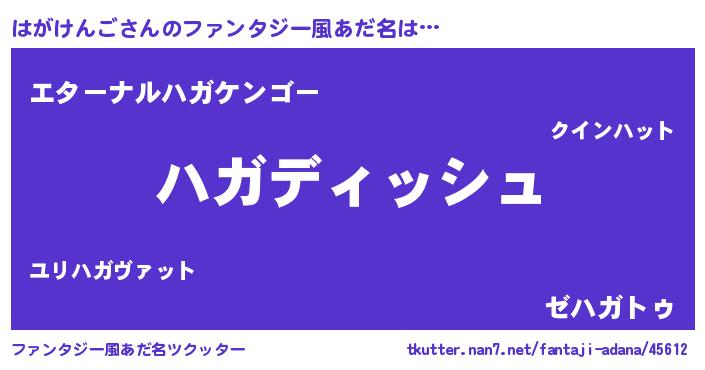| ヒーロー風カッコイイあだ名 | 『ネオハガケンゴ』『仮面ハガダー』 |