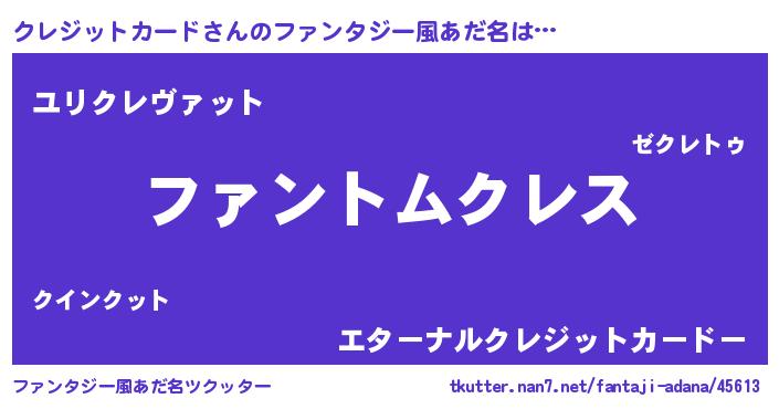 | 女子向けラノベタイトル風あだ名 | 『クレジットカードは平凡を望む』 |