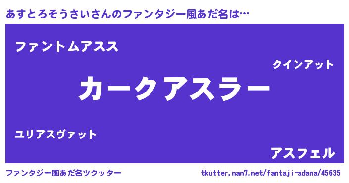 | ヒーロー風カッコイイあだ名 | 『幻影騎士アス』『ネオアストロソウサイ』 |