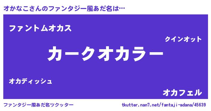 | ヒーロー風カッコイイあだ名 | 『幻影騎士オカ』『スーパーオカナコ』 |