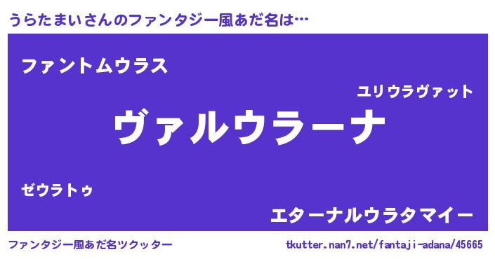 | 男性向けラノベタイトル風あだ名 | 『魔弾の王とうらたまい』 |