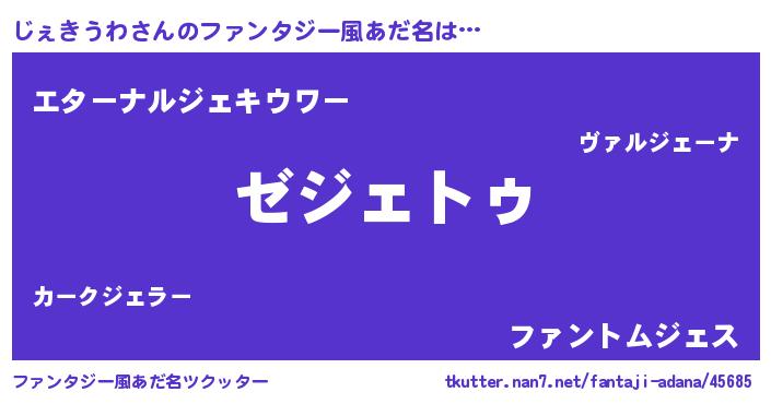 | 意味不明あだ名 | 『自称じぇきうわ』 |
