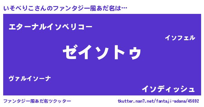 | 女子向けラノベタイトル風あだ名 | 『いそべりこなんてお断りですっ。』 |