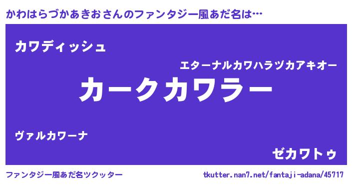 | 意味不明あだ名 | 『永久保存かわはらづかあきお』 |