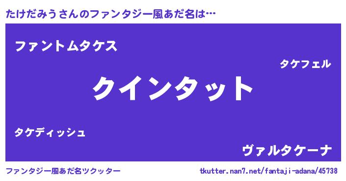 | ヒーロー風カッコイイあだ名 | 『愛の使者たけだみう』『魔戒騎士タケ』 |