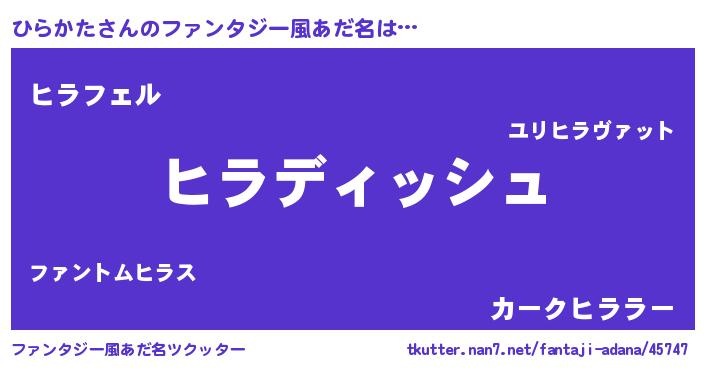 | ヘコむあだ名 | 『ひらかた(遠い目)』『ひらにゅー』 |