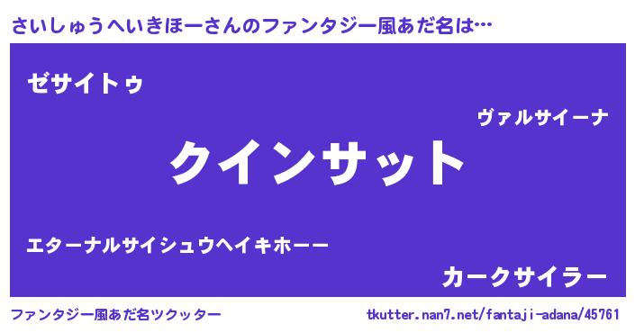 | 欧米人風あだ名 | 『ダニエルさいしゅうへいきほー』 |