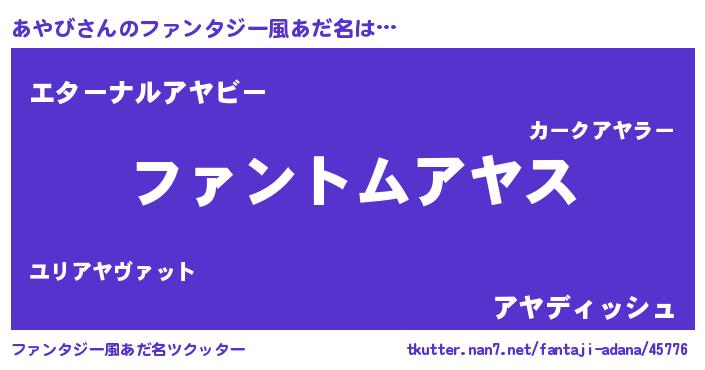 | ヒーロー風カッコイイあだ名 | 『暗黒騎士アヤ』『ウルトラあやびマン』 |