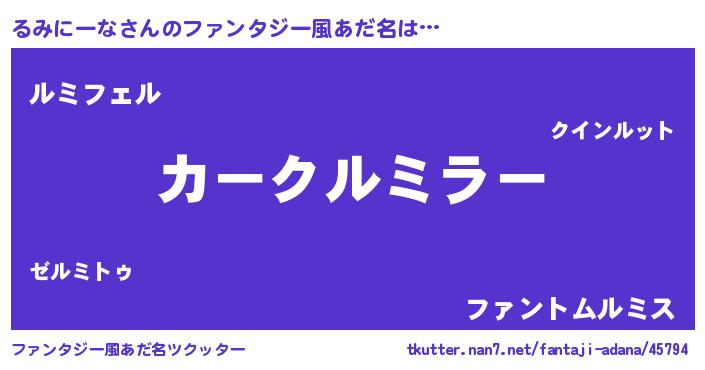 | 意味不明あだ名 | 『ペロリンるみにーな』『自称るみにーな』 |