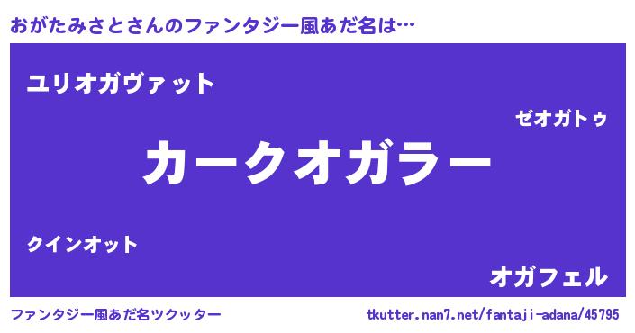| 欧米人風あだ名 | 『おがたみさと・ステッグマイヤー』 |