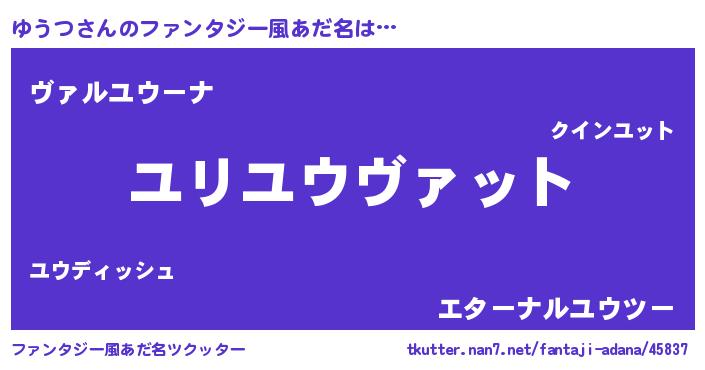 | ヒーロー風カッコイイあだ名 | 『仮面ユウダー』『ウルトラゆうつマン』 |