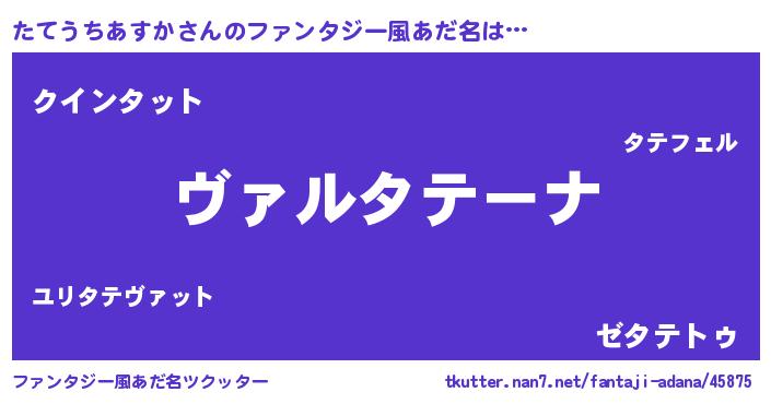 | ヒーロー風カッコイイあだ名 | 『仮面タテダー』『ネオタテウチアスカ』 |