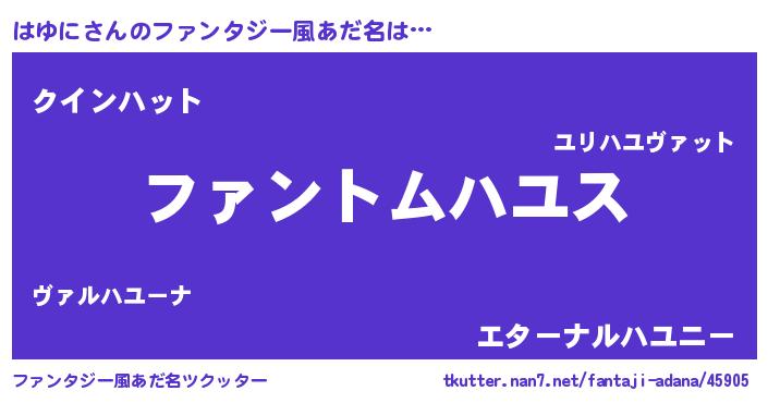 | ヒーロー風カッコイイあだ名 | 『魔戒騎士ハユ』『正義の使者はゆに』 |