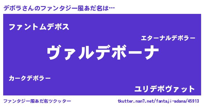 | 男性向けラノベタイトル風あだ名 | 『魔弾の王とデボラ』 |