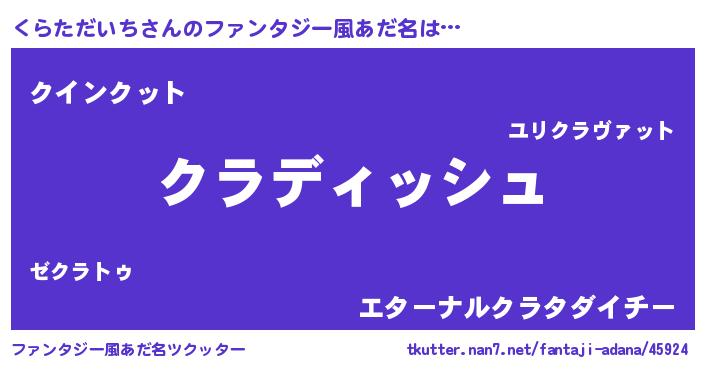 | 意味不明あだ名 | 『永久保存くらただいち』 |