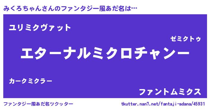 | 女子向けラノベタイトル風あだ名 | 『みくろちゃんの婚約者』 |